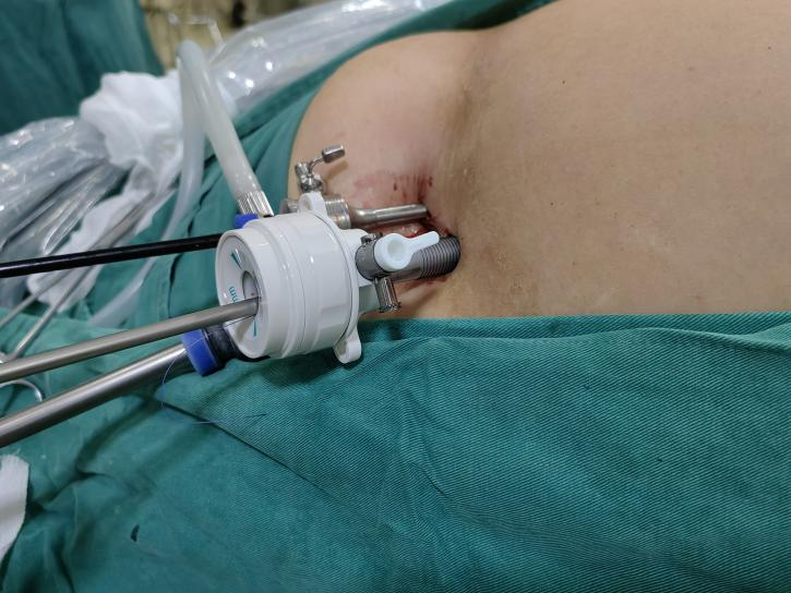 随着我院腹腔镜技术水平的提高,胆囊及阑尾手术由传统开放手术已被成熟的腹腔镜手术所取代。尽管现在成熟的腹腔镜手术已将手术切口微创化,但对年轻爱美的人士来说,术后腹部留下3-4个小切口疤痕,还是有些明显。为满足患者需求,我院普通外科不断探索创新。结合我院实际情况,因单孔腹腔镜需要专门的单孔port价格高昂且不能报销,故常规采用单部位腹腔镜手术。